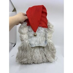 Santa Claus Face Wall Hanging 18" Handmade Yarn Fleece Hat Christmas