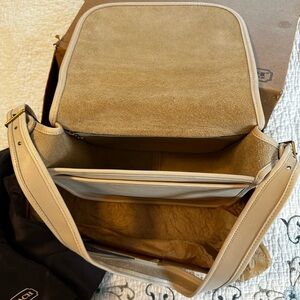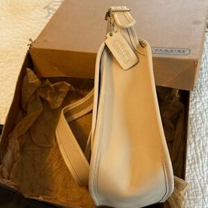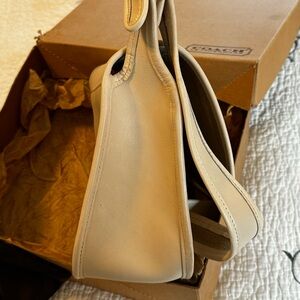 ⭐️Beautiful off-white bone leather bag by Coach. Ideal for versatile use. Fits wallet, makeup bag, keys, sunglasses case and water bottle.