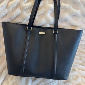 Chic black leather Kate spade tote with gold hardware. Ideal for work. Can fit a laptop in it.