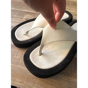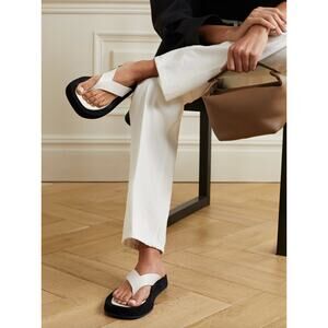 Chic, comfortable and versatile, The Row's 'Ginza' flip flops are everything a casual summer sandal should be. They've been crafted in Italy from off-white leather and have thick straps to secure your feet, while the contrasting black suede platforms provide 30mm of lift. The cushioned insoles make them ideal for all-day wear.