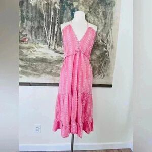 Free People Cleobella Oliver Ruffle Empire Waist Midi Dress In Pink Medium NWOT