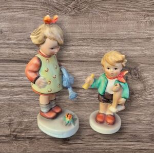 Vintage Hummel Little Gardener and Boy with Horse, 4.5" & 3.25" respectively excellent used condition no chops os cracks