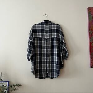 Anthropologie Pilcro Oversized Bo Boyfriend Plaid Navy Button Down Shirt