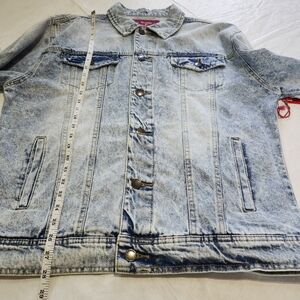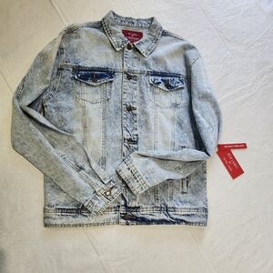 Elevate your style with this classic light blue denim jacket. Perfect for casual outings, this jacket offers both comfort and a timeless look.