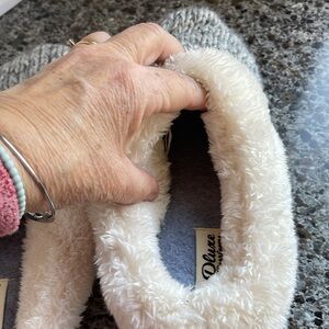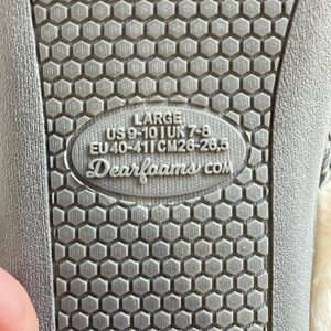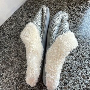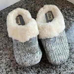 NEW with defect ( yellow sole in 2 spots ) Dluxe Dearfoams Women's Slippers size Large 9-10 Gray and white