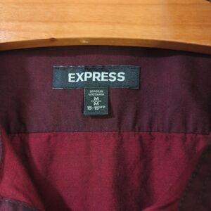 Express Dark Red And Blackb Iridescent Shortsleeve Button-Down Shirt - Men's M