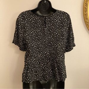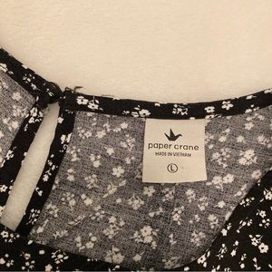 Paper Crane Black White Ditsy Floral Spring Blouse Whimsical Boho Babydoll Top