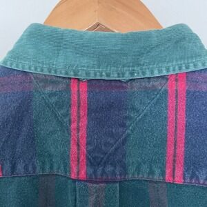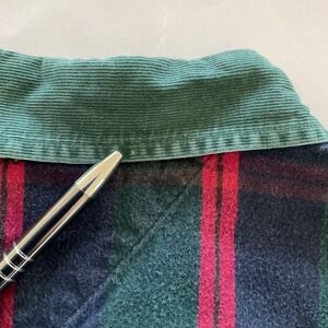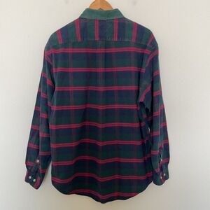 Tommy Hilfiger Flannel Shirt Mens L Corduroy Collar Crest Green Red Navy Plaid