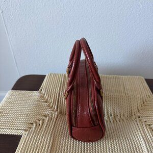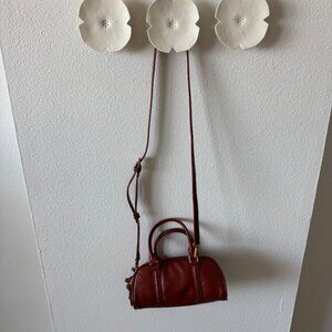 Zara Mini Leather Barrel Bag • Red Brown • Double Zip • Crossbody