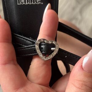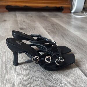Elegant black heels with heart-shaped accents. Perfect for a stylish look.