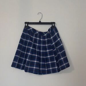 Chic navy plaid skater skirt. Perfect for versatile styling.