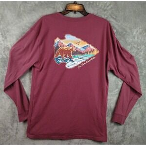 Burlebo Bear Essentials Long Sleeve Pocket T Shirt Mens L Red Cotton Blend