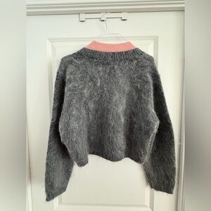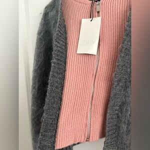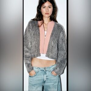 Zara Brushed Knit Zip Cardigan Gray Pink Size Small NWT