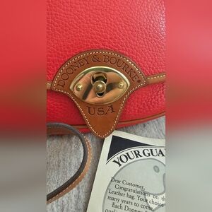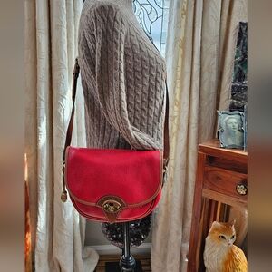 New Vintage Dooney & Bourke Beautiful Red and Saddle tan leather strap and piping.