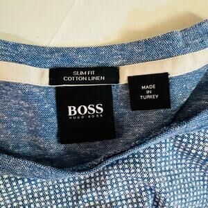 Hugo Boss Slim Fit Cotton Linen Short Sleeve Crew Neck Tee Size M Medium Blue