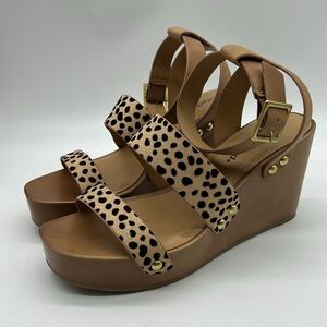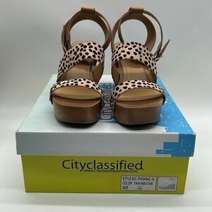 Cityclassified Phonic Sandals, Leopard Wedge Sandals, Platform Heels, Faux Calf Hair Sandals, Strappy Summer Heels, Animal Print Shoes, City Classified Size 6.5, New in Box