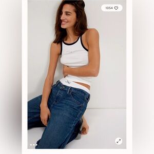 Forever-timeless from our We The Free collection, this tank is featured in a soft cotton fabrication and slim-fitting silhouette with contrast trim and graphic detail at the center-front.