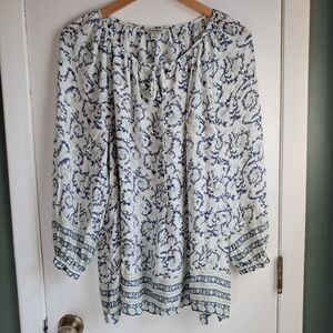 Luxky Brand White And Blue Boho Long Sleeve Peasant Top 1x