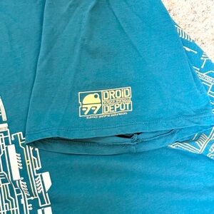 Disney Parks Star Wars exclusive Galaxy's Edge Droid Depot T-shirt featuring an R2-D2 graphic
