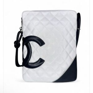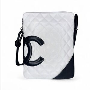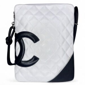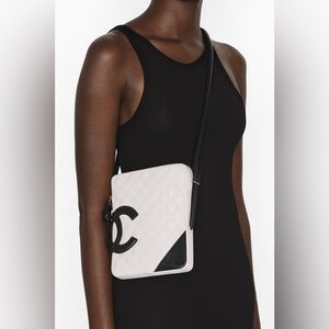 CHANEL Cambon Line White/Black CC Logo Leather Shoulder Bag