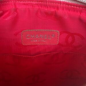 The interior is lined with hot pink fabric (a signature of the Cambon line), adding a playful yet sophisticated touch. Designed with practicality in mind, the bag offers ample room for your daily essentials and includes multiple interior compartments, including a zippered pocket, to keep your belongings organized.
