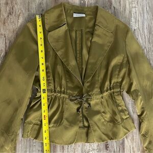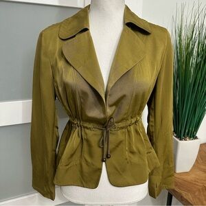 Akris Punto Blazer Jacket Drawstring Tie Waist SZ 8 Olive Old Money Luxury READ