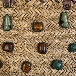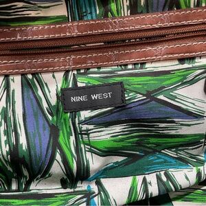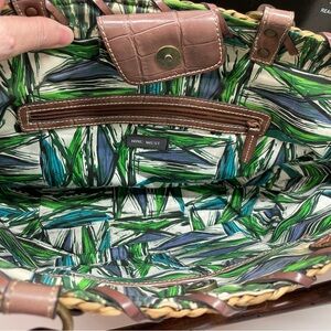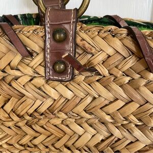 Nine West Artisan Woven Natural Straw Tote Bag with Brown and Green Accents