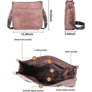 Women’s Pink Leather Purse Zipped Pockets Crossbody Bag and Shoulder Bag