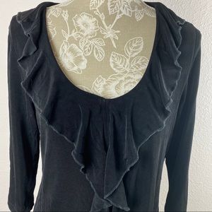 Travel Smith Black Ruffle Front Top Medium