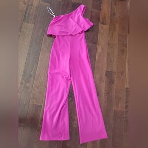 Lulu's Vibrant Pink One-Shoulder Jumpsuit Magneta One Shoulder Tiered Wide Leg