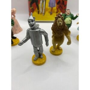 Keywords: Wizard of Oz, VHS tape, figurines, Dorothy, Tin Man, Scarecrow, Cowardly Lion, Wicked Witch, Glinda, Toto, collectible, vintage toys, movie memorabilia, 1939, 1986, 1987