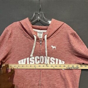 Wisconsin Badgers Hooded Jacket Womens L Red Victoria's Secret PINK Zip Up
