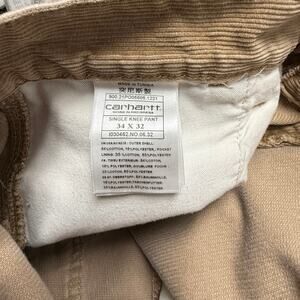 Carhartt Men’s Size 34x32 Tan Camel Corduroy Carpenter Work Pants Single Knee