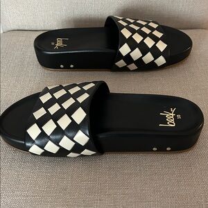 Comfy, walkable impeccably made Beek sandals. Molded arch, soft leather wrapped memory foam footbed. If you know the brand you know the 1st rate workmanship. New without tickets at a fabulous price.