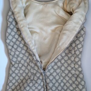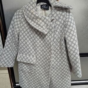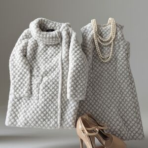 Elegant, Vintage Wool, Light Gray And Beige Patterned Women's Coat and Dress Set