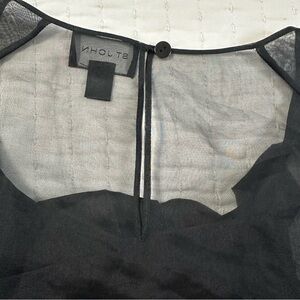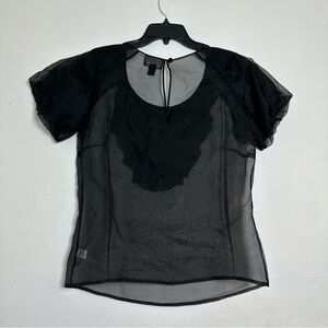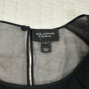 St. John Couture 100% Silk Elegant Black Caviar Sheer Blouse With Puff Sleeves