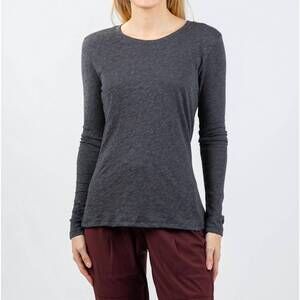 Elevate your wardrobe with the Signature Slub Long Sleeve Tee by Goldie in Charcoal Heather. This tee, made from 100% Peruvian pima cotton, boasts a soft, silky texture and features a distinguished crew neck and long sleeves. With its vertical railroad-stitch seam at the back, this piece is designed and manufactured in Peru, offering 26 inches of elegant comfort. Easy to maintain with its machine washable care instructions, this pull-on tee is perfect for seamless styling throughout the seasons. Model is wearing a size S (5'8" height, 33" bust, 25" waist, 36" hips).
