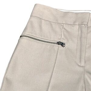 Reiss beige wide leg high rise wool blend dress pants silver front zipper pocket