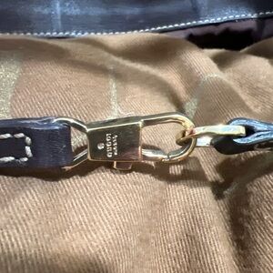 • Hardware: Heavy-duty, pale gold-tone D-ring accents with "GUCCI" engravings.