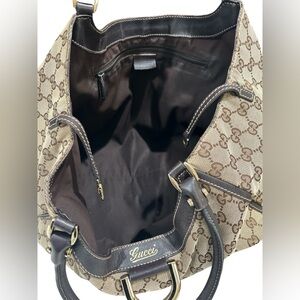 • Canvas: Shows characteristic fraying/pilling along the top edges and corners (see detailed photos). This is common for vintage GG canvas and does not affect the structural integrity of the bag.