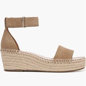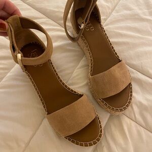 Suede beige wedge espadrille sandals with ankle strap. Size 8. Ready for spring!