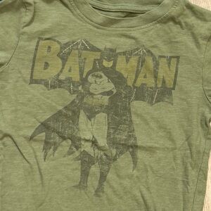 Stylish olive green t-shirt with Batman logo. Comfortable and casual wear.