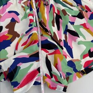 Dynamic athletic shorts with a bold multicolor pattern. Ideal for active wear and casual style.