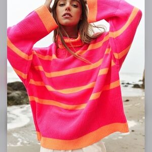 Davi & Dani Neon Pink and Orange Oversized Knit Loose Fit Sweater Size Medium