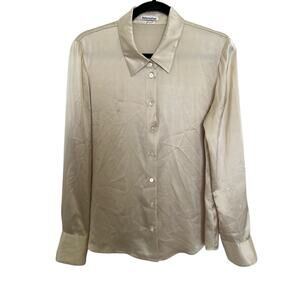 Reformation Sky Silk Buttondown Top Medium Ivory Long Sleeve Classic Preppy