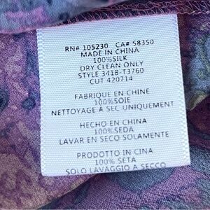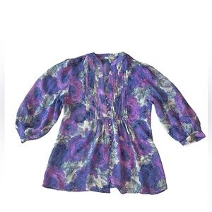 Joie purple floral 3/4 sleeve button front top blouse. 100% silk. Sheer. Gorgeous purple and lavender floral design. Excellent condition. Women’s size small. See pictures for approximate measurements,