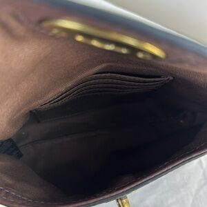 Gold and silver hardware to key lock closure in shiny intact condition