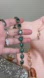 Chic bracelet with emerald green stones. Gold-tone setting. Adds sophistication to any look.