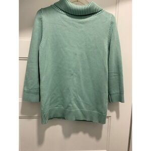 Keywords: Talbots sweater, cowl neck, 3/4 sleeve, knitwear, lightweight sweater, aqua blue, casual top, office attire, pullover, fall fashion, winter essential, preppy