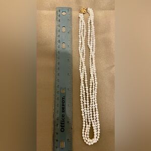 Pearls still maintain a good luster with uniform color. No fraying in the strands. Clasp has very minor surface wear, which is consistent with age. Only worn a few times. Understated, elegant & timeless—it will never go out of style.